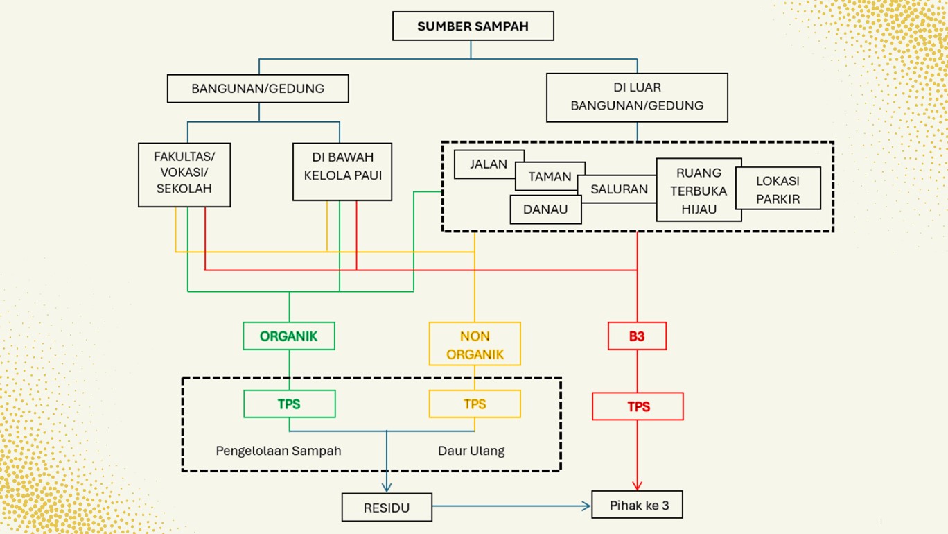 Direktorat Operasi, Pemeliharaan Fasilitas, dan Manajemen Aset UI telah melaksanakan program kerja dalam Sistem Pengelolaan Sampah Universitas Indonesia, sebagai berikut: I. Pemilahan Timbunan sampah yang terdiri dari sampah organik dan anorganik dipilah di sumber sampah oleh petugas kebersihan atau penghasil sampah. Sampah yang dipilah oleh Universitas Indonesia dikelompokan menjadi 4 (empat) kelompok sampah, yaitu sebagai...Read More