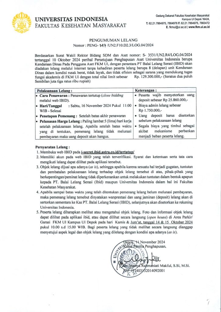 Pengumuman Lelang Kendaraan FIK