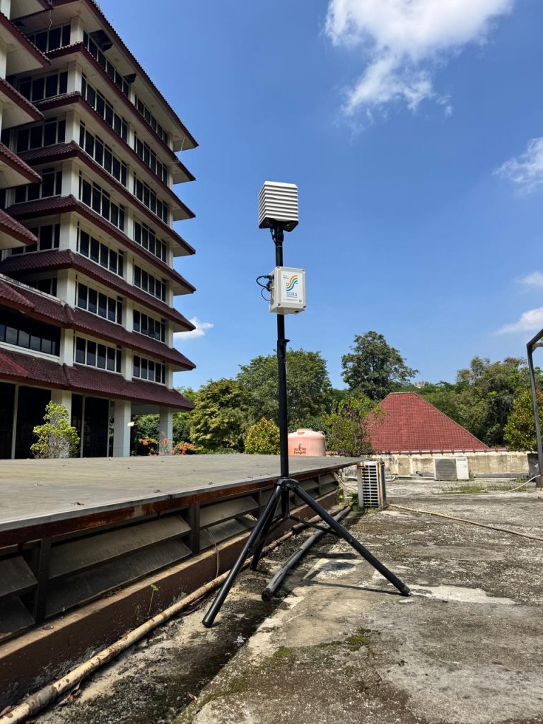 Pemasangan alat ini bertujuan untuk memantau kondisi udara di lingkungan kampus secara real-time. Data yang dihasilkan mencakup berbagai parameter seperti partikulat (PM2.5 dan PM10), karbon monoksida (CO), Ozon (O3), nitrogen dioksida (NO₂), belerang dioksida (SO₂), suhu dan kelembapan. Dari alat ini dapat dilihat pola perubahan kualitas udara setiap hari dan mengambil langkah yang tepat untuk menjaga kesehatan sivitas akademika.